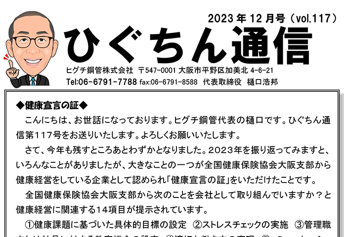 ひぐちん通信 ひぐちん通信 vol.117 を公開しました。 2023.12.09 ひぐちん通信 📄 PDFでご覧いただけます。 ひぐちん通信 vol.116 を公開しました。 前の記事 ひぐちん通信 vol.118 を公開しました。 次の記事 ひぐちん通信 vol.44 を公開しました。 2017.11.13