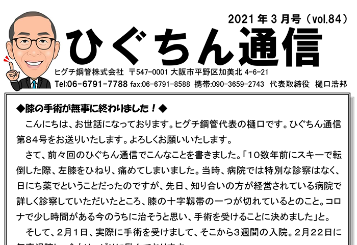 ひぐちん通信 ひぐちん通信 vol.84 を公開しました。 2021.03.09 ひぐちん通信 📄 PDFでご覧いただけます。 丸パイプの曲げ 前の記事 ひぐちん通信 vol.85 を公開しました。 次の記事 ひぐちん通信 vol.114 を公開しました。 2023.09.05
