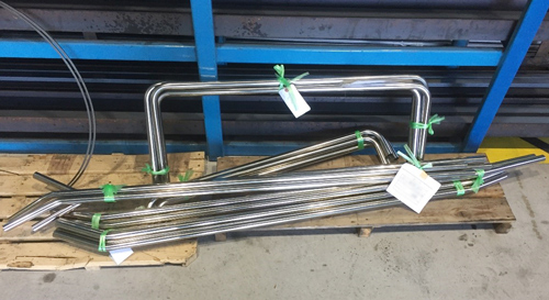SUS304(#400)25x1.5 芯50Rの曲げ加工5種類で合計18本。